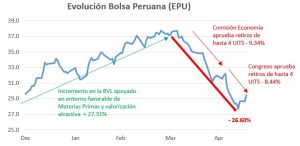 El efecto de esta medida generó una caída de 9.34% en la Bolsa de Valores de Lima con la aprobación del dictamen en la Comisión de Economía (12 de abril). La segunda caída de 8.44% se dio con la aprobación en el Pleno del Congreso (04 de mayo).